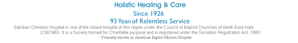 Under CBCNEI Medical Ministry Hospital has specific Vision, Mission, Objectives and Belief Critical Care Unit (CCU) 24 Hours Emergency Service 24 Hours Pharmacy